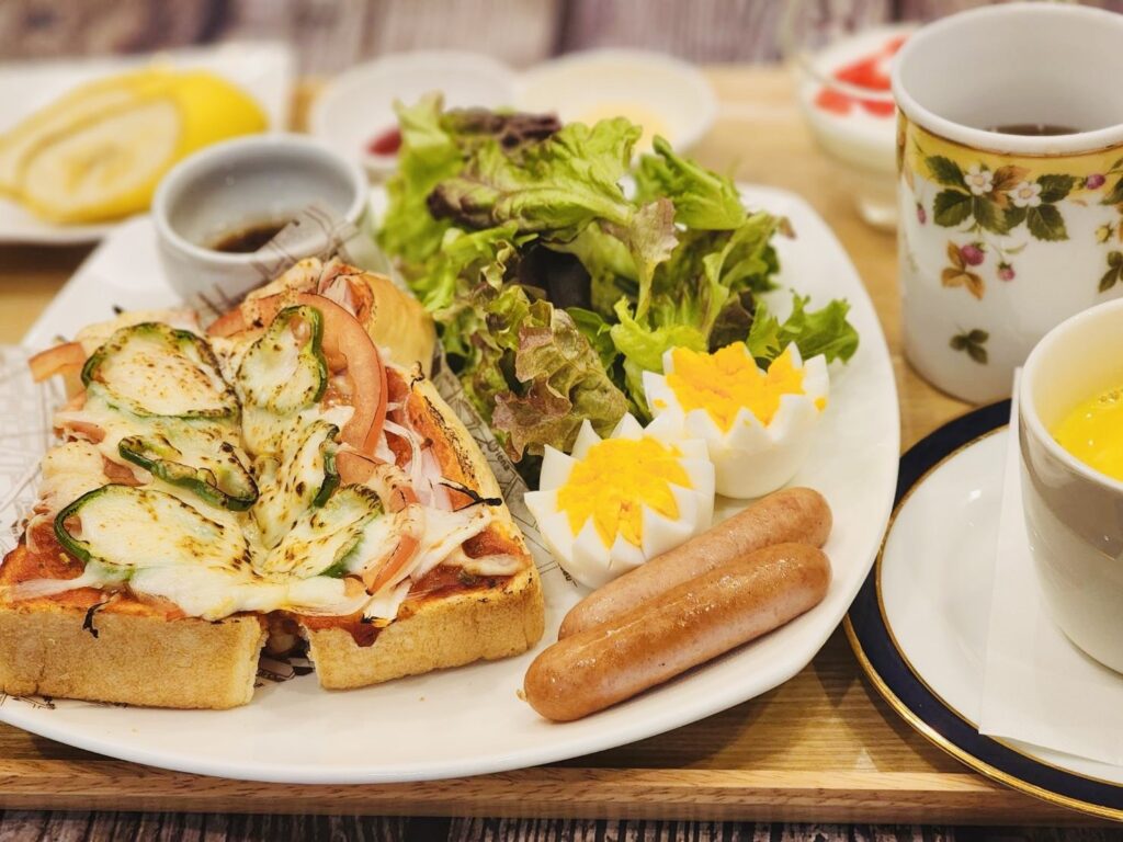 ピザトーストの朝食