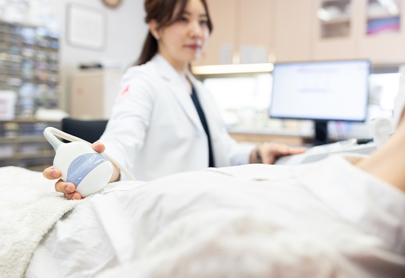 母体や赤ちゃんの健康状態を定期的に確認します。ママと赤ちゃんが心身共に健やかな妊娠期間を過ごし元気な赤ちゃんを出産するために、超音波検査で赤ちゃんの成長を確認し、週数に応じた検査を行います。